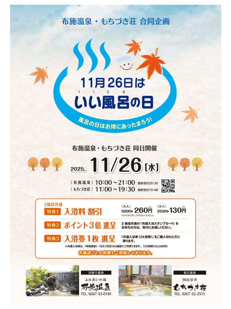 11月26日は布施温泉ともちづき荘へぜひお越しください☺